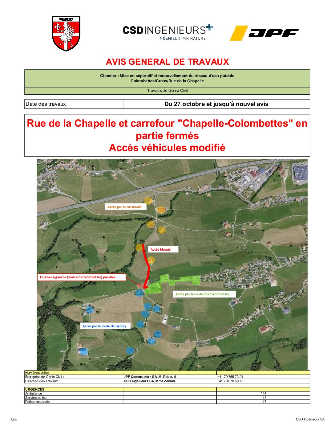 Vuadens > Rue de la Chapelle et carrefour “Chapelle-Colombettes” – Accès modifié Rue de la Chapelle et carrefour “Chapelle-Colombettes” – Accès modifié
